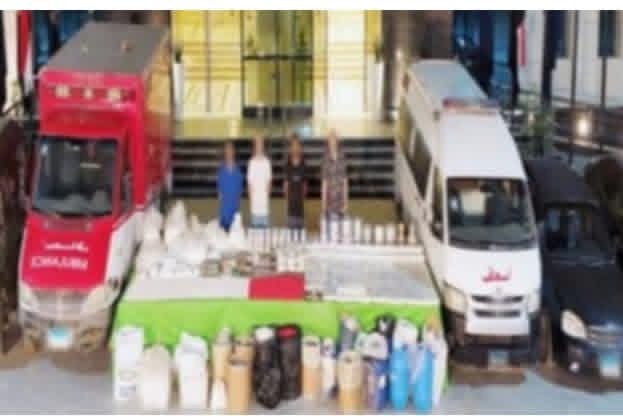 تم تتبعهم وإعداد الأكمنة وضبطهم وبحوزتهم (1,6 مليون قرص ترامادول، 100 كيلو بودرة ترامادول، 3 أطنان مواد خام لتصنيع العقاقير المخدرة، معدات وأدوات تصنيع، كميات من الحشيش والشابو، و6 سيارات بينها سيارتا الإسعاف المستخدمتان في الترويج).